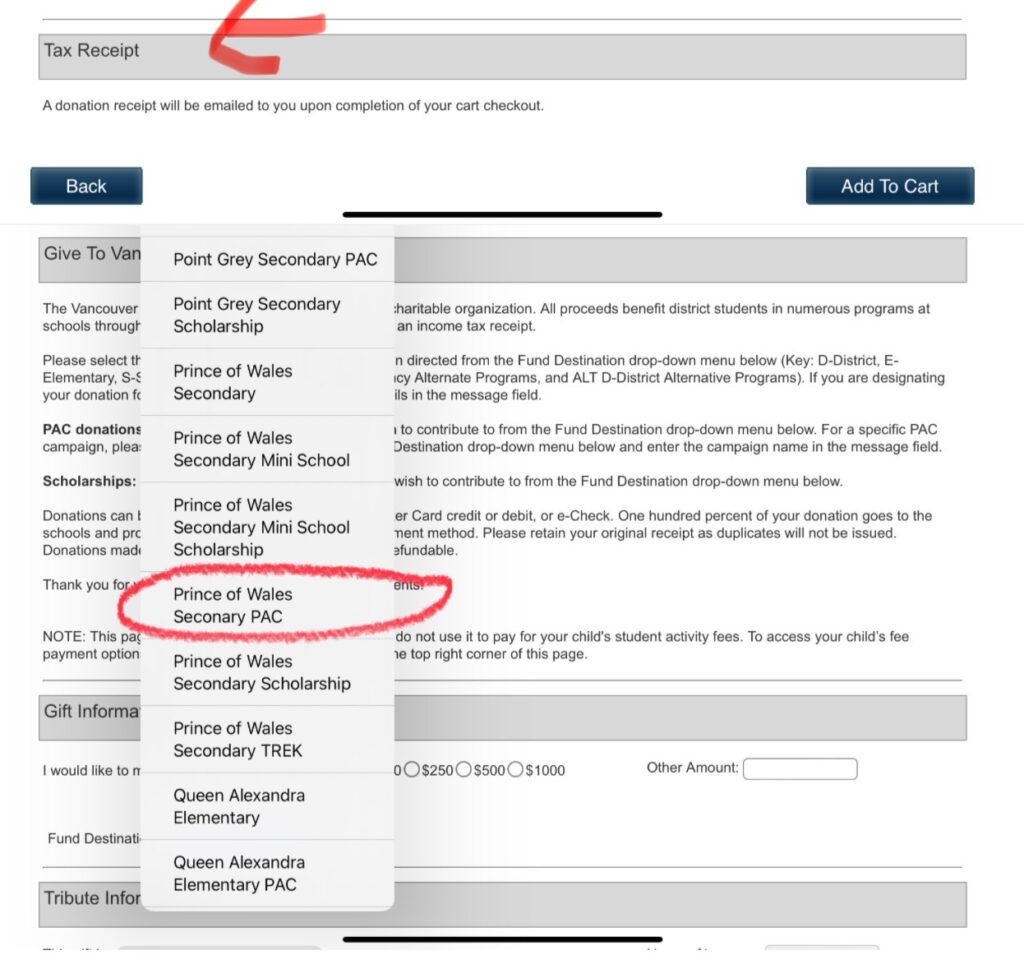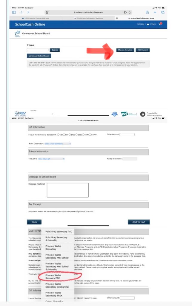 Go to your family’s School CashOnline Account and look for the “make a donation” button. Please be careful to select PW PAC, which is listed as “Prince of Wales Secondary PAC.” A donation of $100 per family is recommended to meet the basic fundraising requests, and, if preferred, you will also be able to direct the donation to a specific club, team, project, or item.